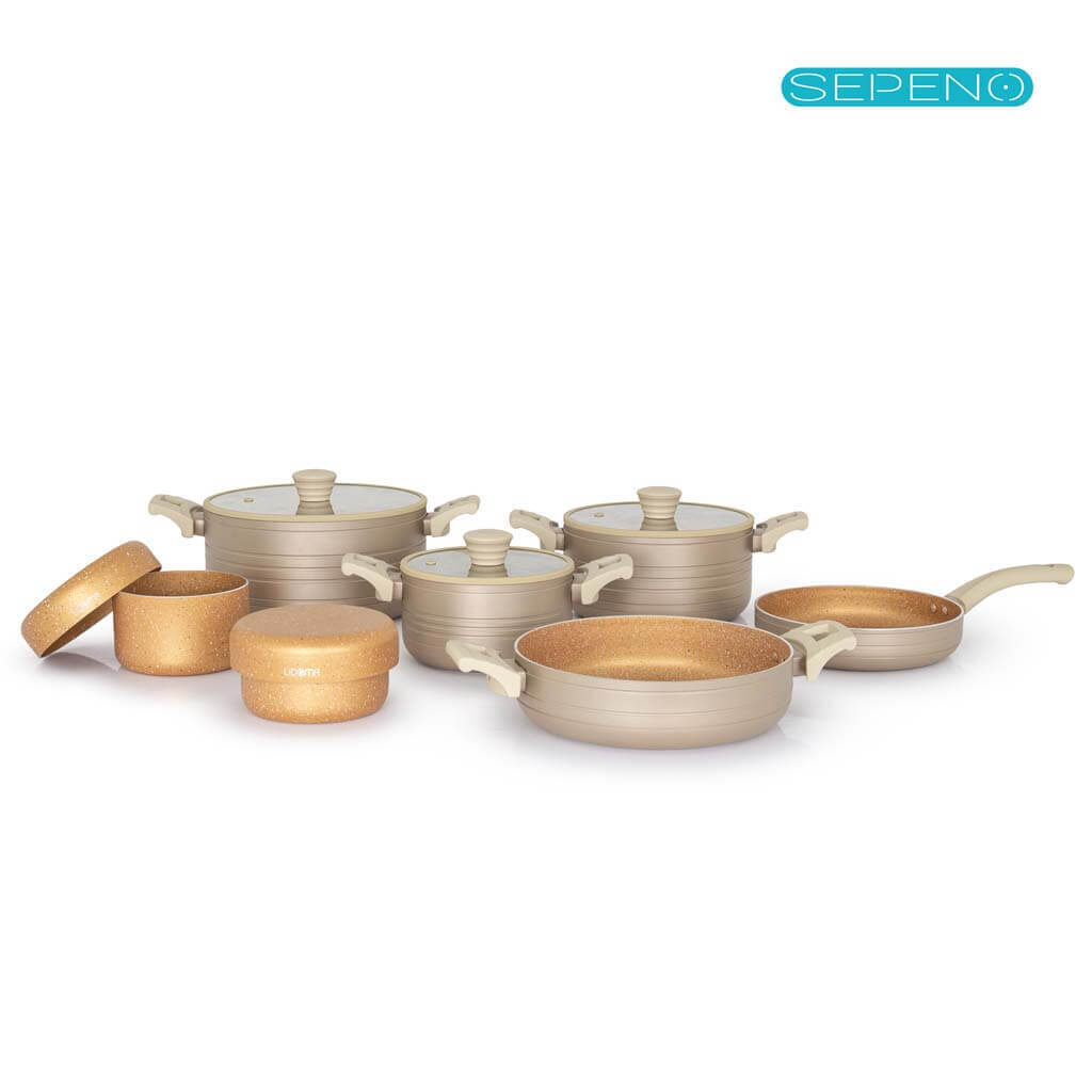 سرویس قابلمه 12 پارچه گرانیتی لیدوما با درب سیلیکونی مدل ویلیا - بژ