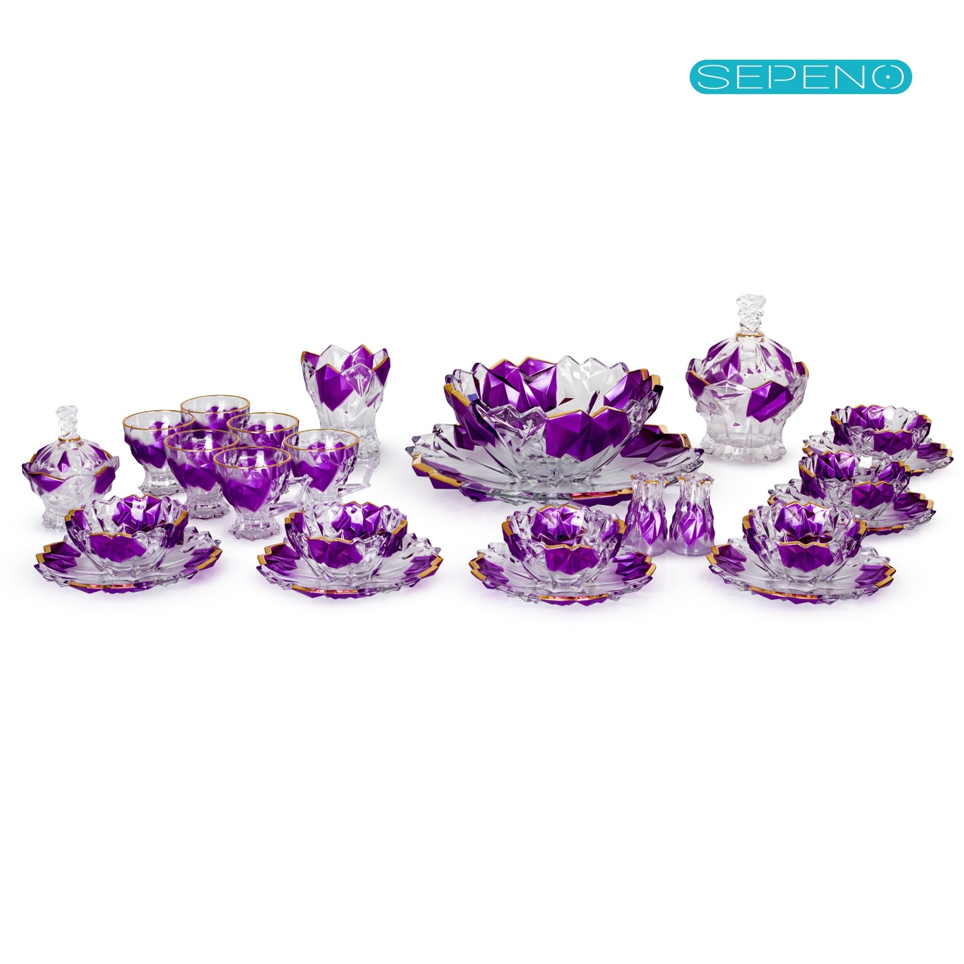 سرویس بلور 27 پارچه ژاپنی خانواده سیلیکا مدل مونتانا- بنفش
