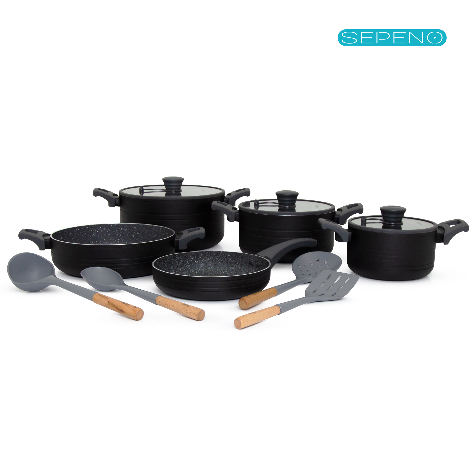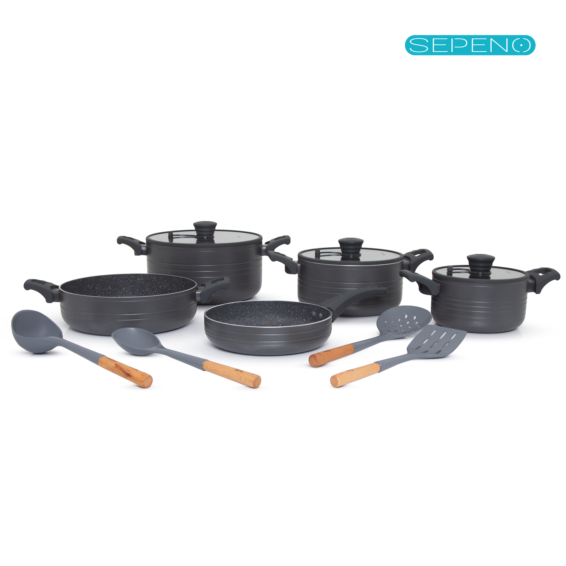 سرویس قابلمه 12 پارچه گرانیتی لیدوما با درب سیلیکونی مدل ویلیا وی 2 (V2)