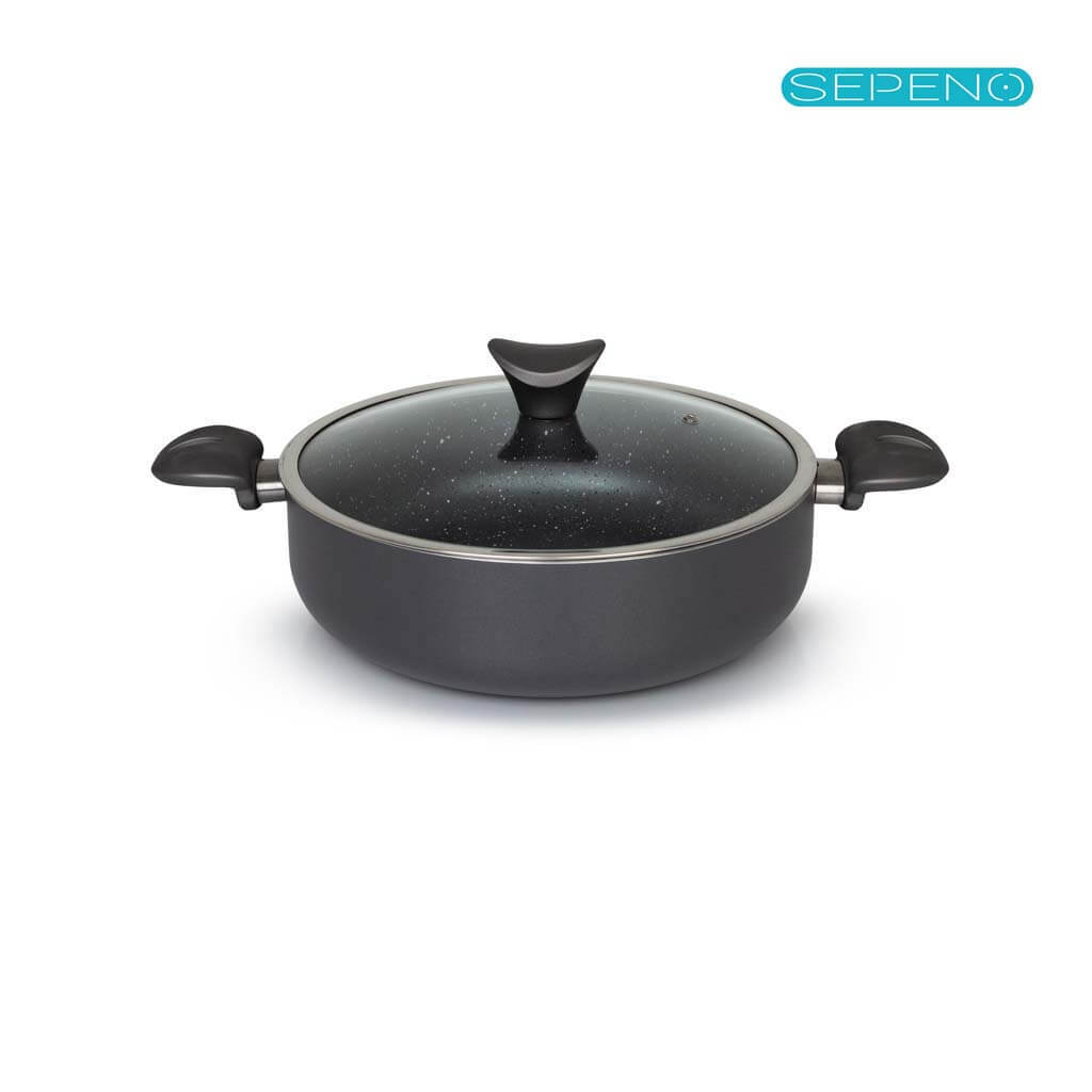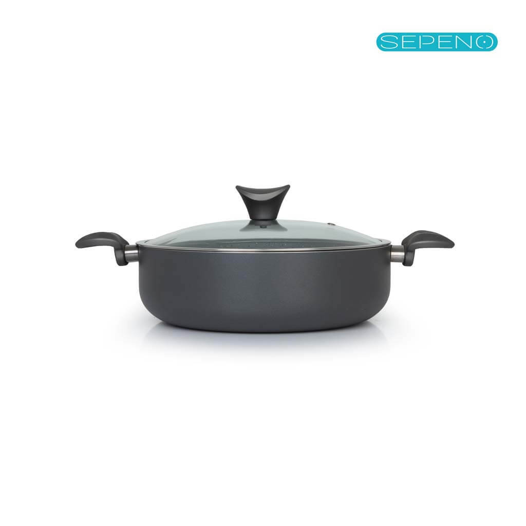 تابه دو دسته درب دار لیدوما مدل الکترا - سایز 28 سانتی متر
